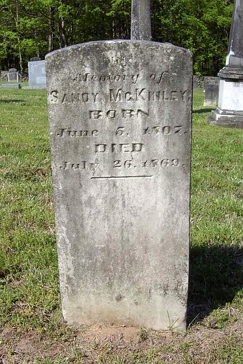 This photograph of the gravestone of Alexander McKinley was taken on April 21, 2005, and is in the possession of Herbert Arthur Huston. The grave is at location 8 D 390 in the cemetery behind Rocky River Presbyterian Church. The church is at 7940 Rocky River Road in Concord, North Carolina, Latitude 35° 18.44′ North, Longitude 80° 35.88′ West.