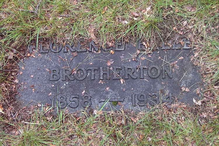 This photograph of Florence Belle Swickard's gravestone was taken on June 9, 2010. The grave is at the Brotherton family plot in Woodlawn Cemetery at Latitude 42° 26.521′ North, Longitude 83° 7.625′ West. The cemetery is at 19975 Woodward Avenue in Detroit, Michigan. The year of birth is incorrect; it should be 1857, not 1858.