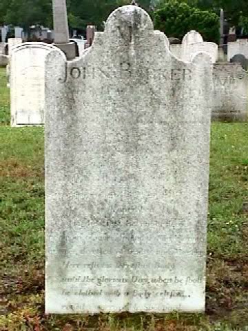 This photograph of the gravestone of John Barker was taken on May 27, 2001, by Herbert Arthur Huston. The grave is at Center Street Cemetery. The cemetery is on Center Street (State Route 150) between South Orchard Street and South Colony Street (U.S. Route 5) in Wallingford, Connecticut, at Latitude 41° 27.3′ North, Longitude 72° 49.4′ West.