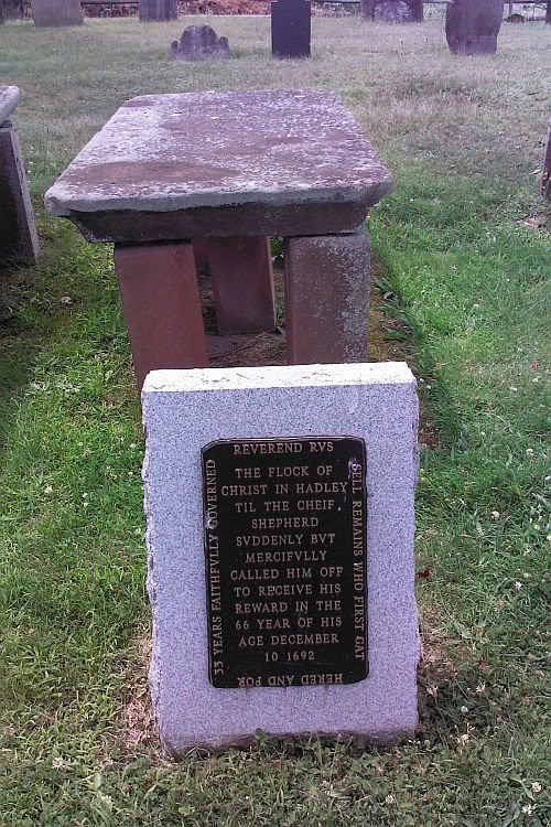 This photograph of the gravestone of John Russell was taken on July 5, 2012, by Herbert Arthur Huston. The grave is in the Old Hadley Cemetery at Latitude 42° 20.672′ North, Longitude 72° 36.169′ West. The cemetery is on the northeast corner of Cemetery Road and North Branch Road and to the west of the Hadley Town Common. in Hadley, Massachusetts. This picture links to a larger version that is suitable for printing.