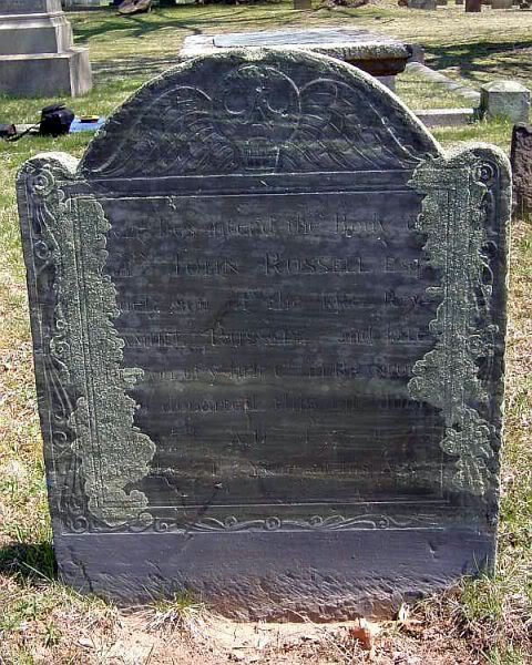 This photograph of the gravestone of John Russell was taken on April 19, 2008, by Herbert Arthur Huston. The grave is in Branford Center Cemetery at Latitude 41° 16.834′ North, Longitude 72° 48.485′ West. The cemetery is on the east side of Montowese Street (State Route 146) south of the intersection with Bradley Avenue in Branford, Connecticut.